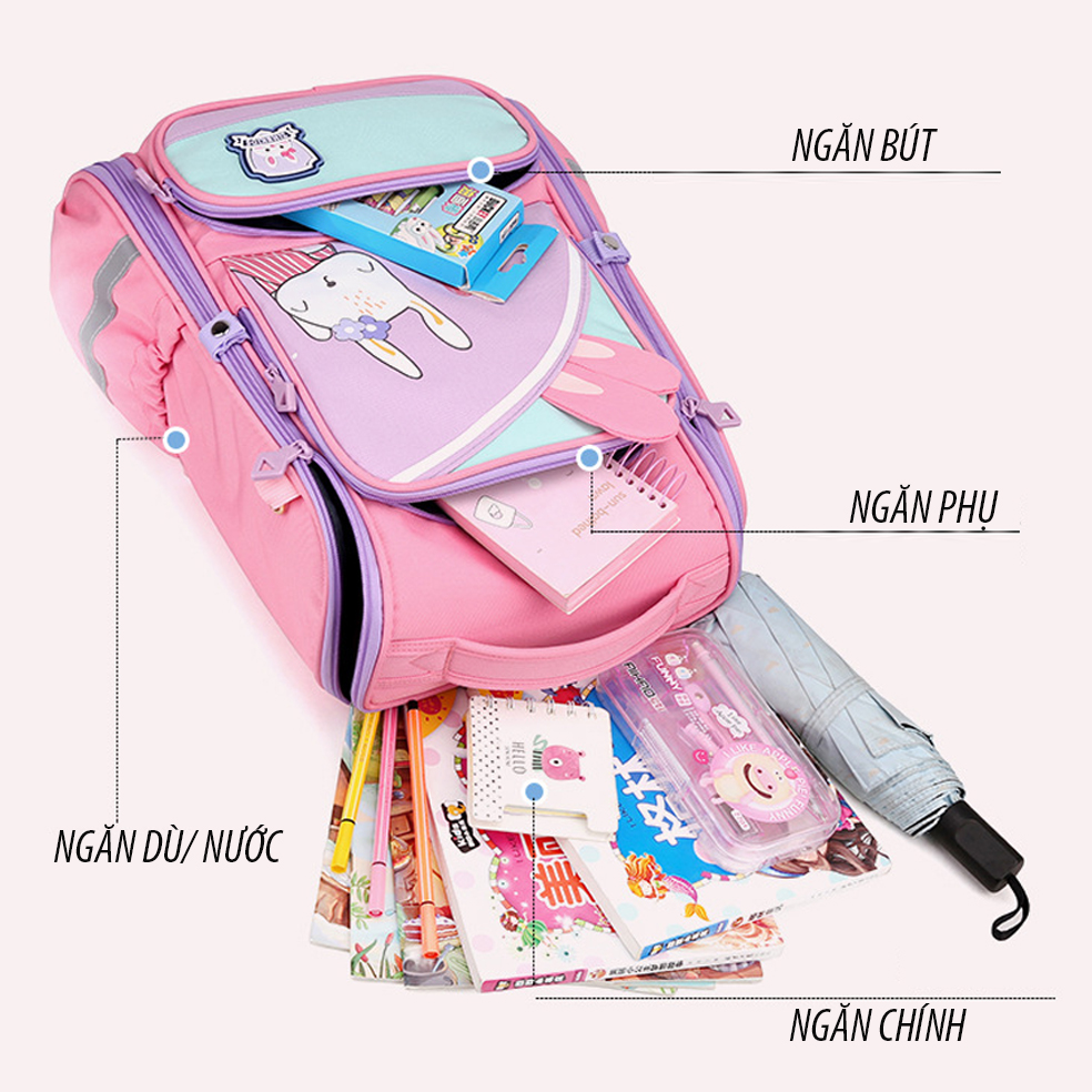535|🟣Balo chống gù bé tiểu học tặng kèm gấu bông và 3 miếng stiker siêu xinh PTLUXURY