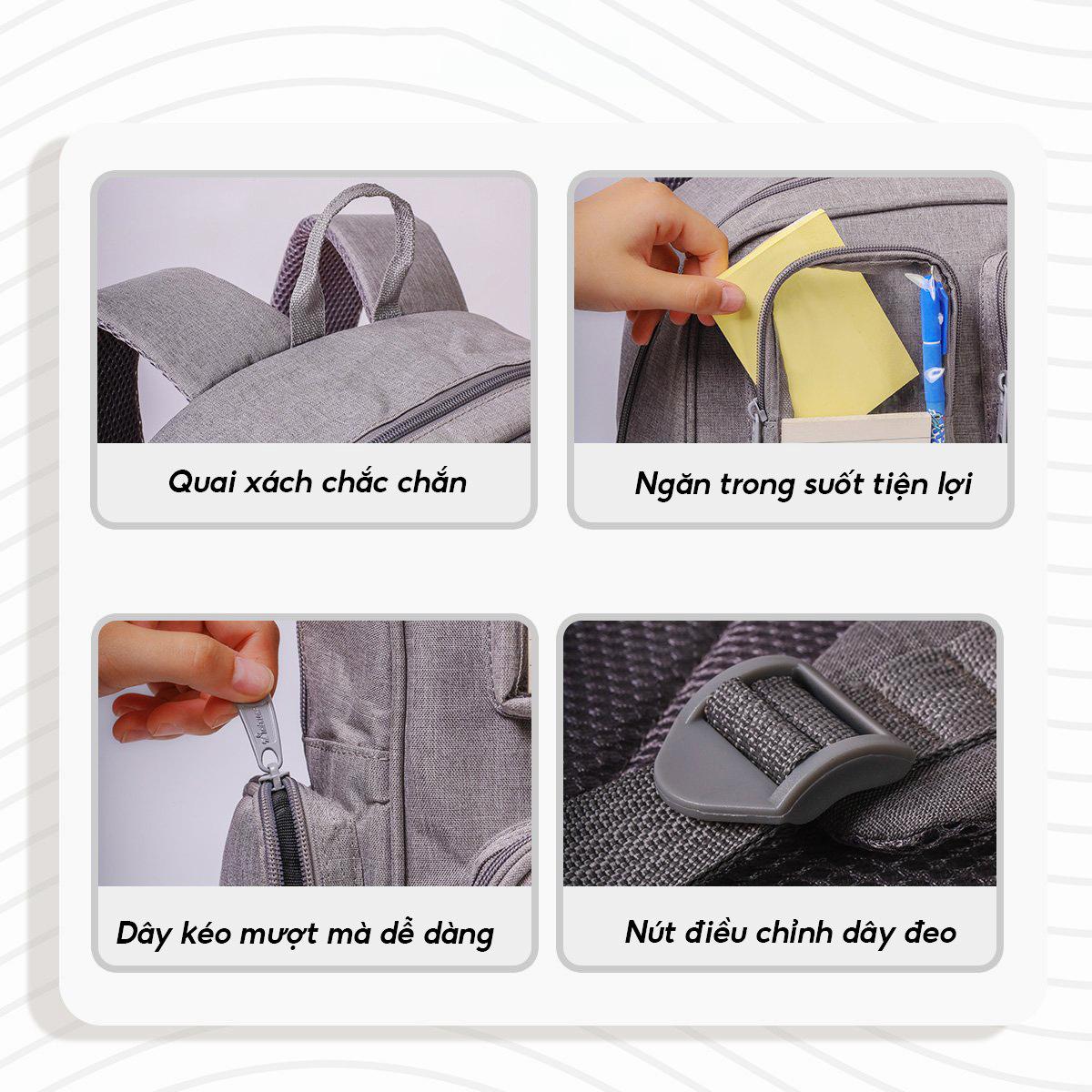TÍNH NĂNG SẢN PHẨM ️Ba lô toàn diện với đệm mút dày êm giúp chống xô lệch, quai đeo trợ lực, đệm lưng thoát khí, nút điều chỉnh độ dài dây đeo, dây cài ngực. ️
