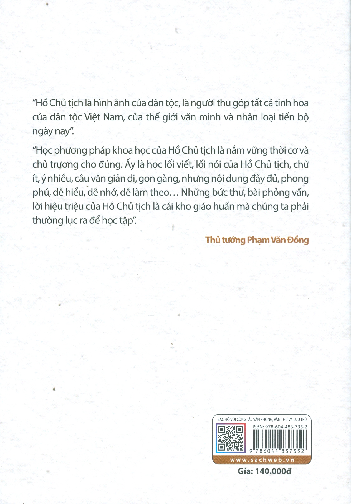Phần thứ hai là tập hợp một số bài viết của Bác Hồ có liên quan đến công tác văn phòng, văn thư và lưu trữ như: óc tổ chức công việc trong hoạt động của Ủy ban nhân dân các cấp, về chống thói ba hoa, bệnh quan liêu, nạn giấy tờ, về cần kiệm liêm chính… Bác Hồ nói những điều đó trong nhiều hoàn cảnh lịch sử khác nhau nhưng đến tận ngày nay vẫn còn nguyên giá trị thời sự, nhất là khi công cuộc cải cách nền hành chính ở nước ta đang được đẩy mạnh để làm cho hoạt động quản lý nhà nước hiệu quả hơn. Bằng cách dẫn ra những lời nhắc nhở của Bác Hồ và những thành tựu nghiên cứu của nhiều nhà khoa học về công việc văn phòng, tác giả đã giúp người đọc hiểu một cách đầy đủ hơn về những công việc thầm lặng, nhưng rất có ý nghĩa thuộc lĩnh vực văn phòng, văn thư và lưu trữ.