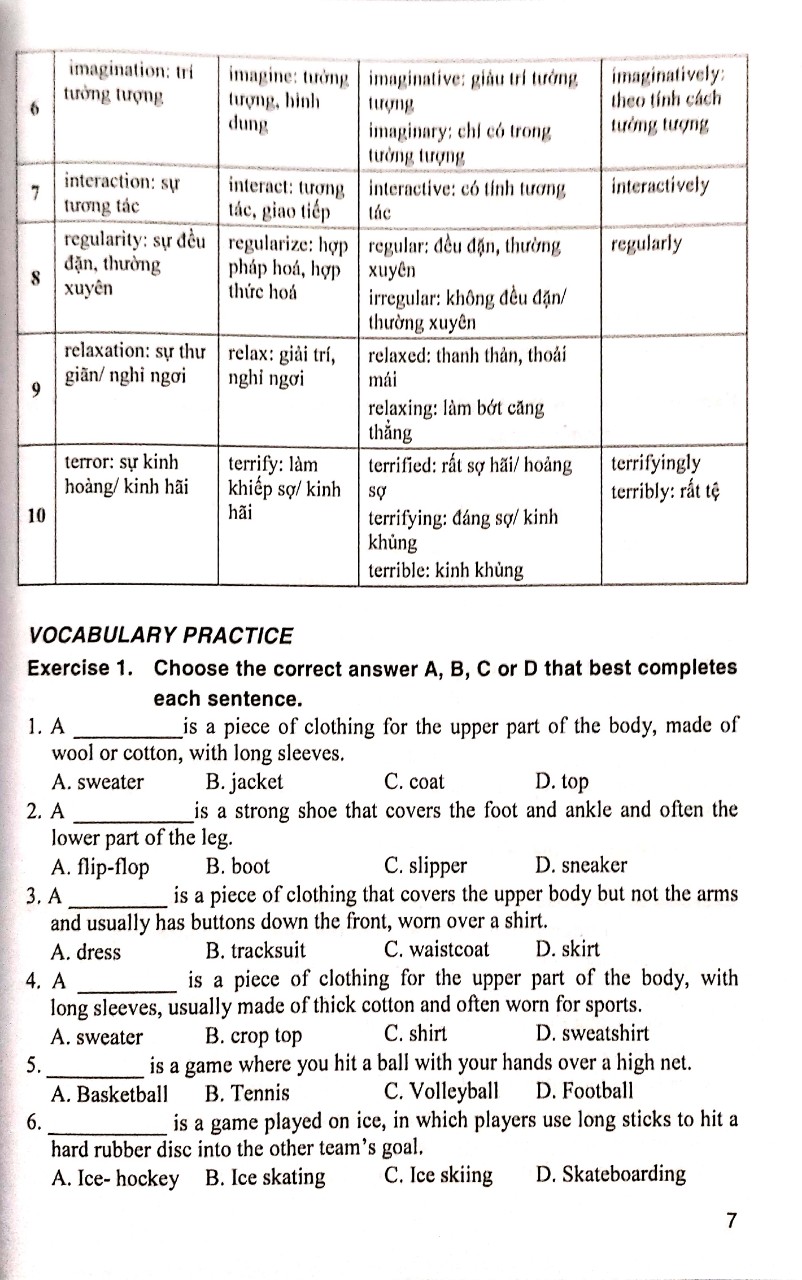Vocabulary practice: các bài luyện tập giúp các em học sinh ôn luyện cách dùng các từ ngữ để ghi nhớ mà