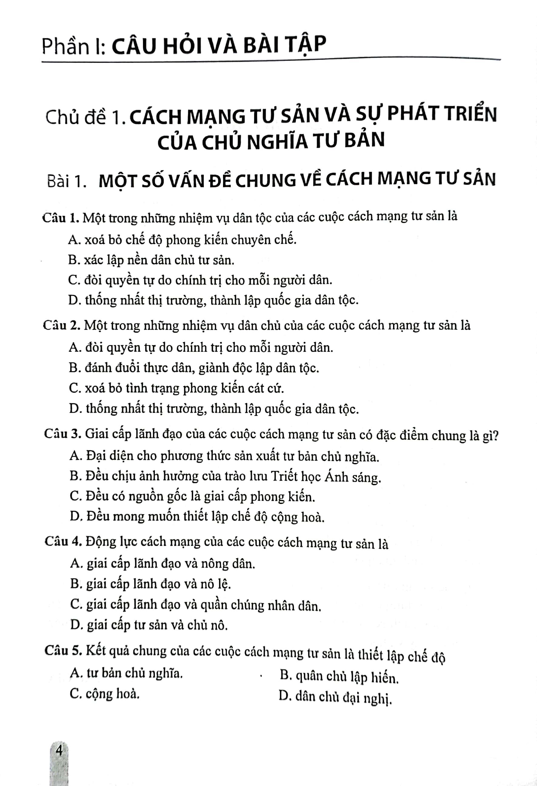 LỊCH SỬ 11 - BÀI 1: MỘT SỐ VẤN ĐỀ CHUNG VỀ CÁCH MẠNG TƯ SẢN | BÀI TẬP TRẮC NGHIỆM