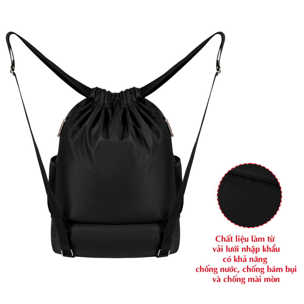 Chất liệu : Balo dây rút thể thao được sử dụng chất liệu dù lạnh chống thấm nước hiệu quả cao, chống bám bụi, chống mài mòn