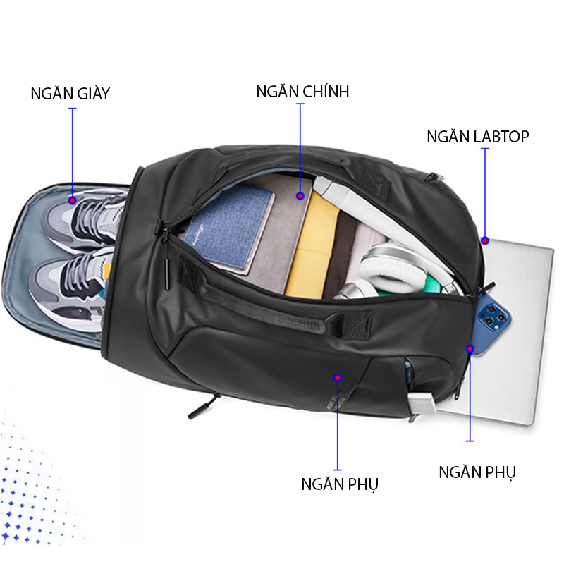 - Chất liệu vải Polyester cao cấp được mã hóa siêu chống thấm nước - Chức năng: Không thấm nước, thoáng khí, chống mài mòn, chống sốc, chống rạch - Balo có thiết kế nhiều