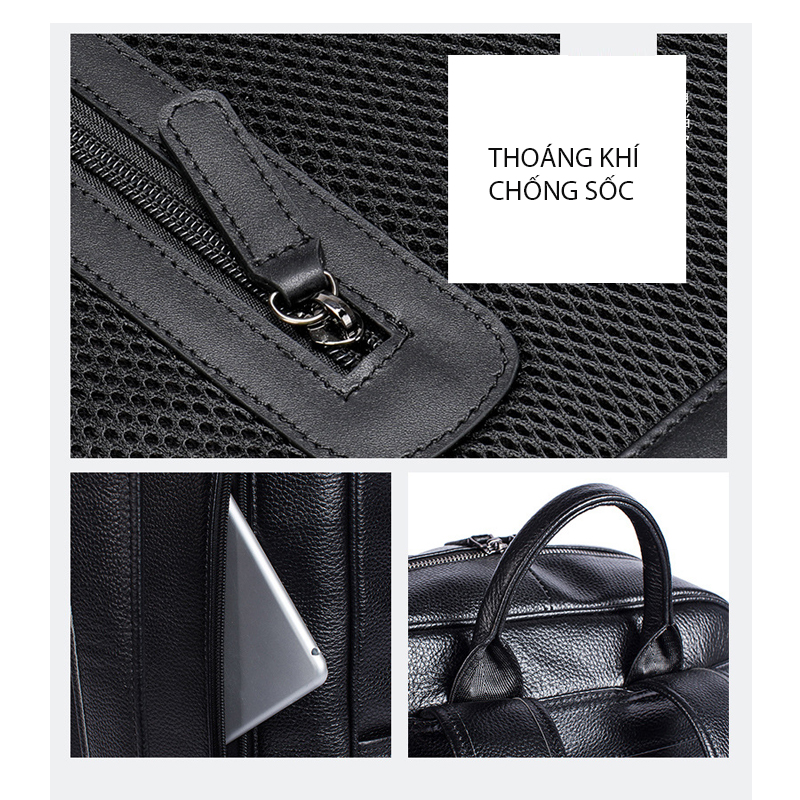 Kích thước : rộng 31cm X cao 43cm X dày 15cm Trọng lượng: 1.2 kg Dung tích: laptop 15.6 inch Màu sắc: Đen Phương pháp sản xuất: thủ công Chất liệu : Da BÒ THẬT