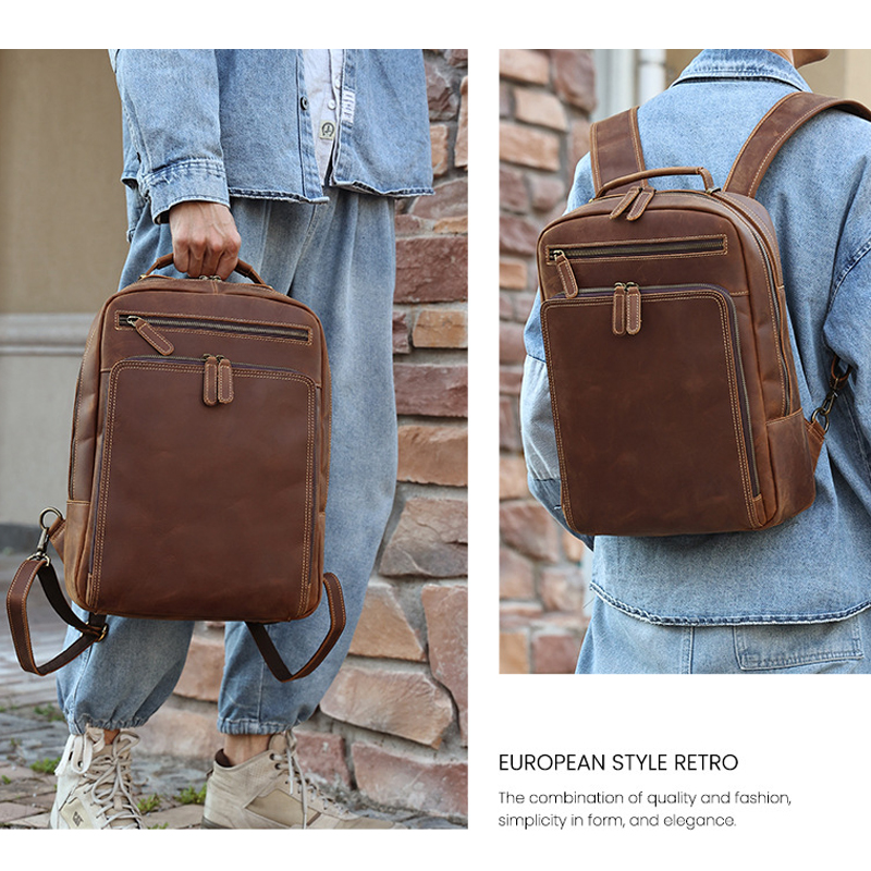 Balo Da Bò Thật Đa Chức Năng Đựng Laptop VINTAGE TUDA BPL328