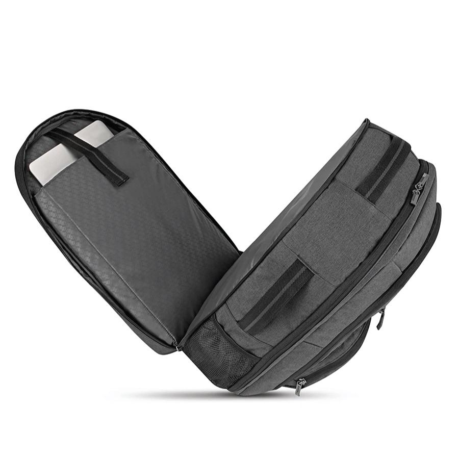 FEATURES - Business backpack with dedicated compartment to protect 15.6" laptop - Spacious U-shaped main compartment opening design increases luggage accessibility - Organized storage in the front compartment keeps essentials neatly organized - Expandable side