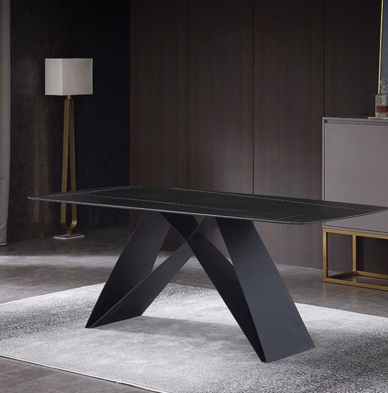 Bàn ăn URBAN, Mẫu bàn ăn hiện đại chân sắt sơn tĩnh điện hình chữ U, Mặt đá Ceramic chống trầy xước