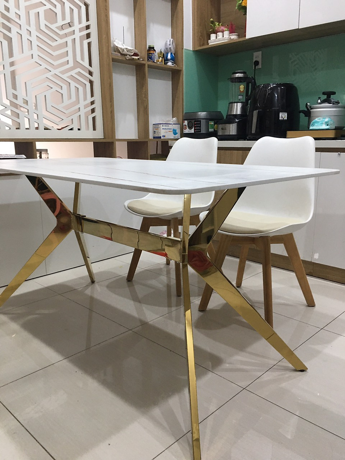 Giao bộ bàn ăn mặt đá Ceramic bóng chân chữ H kèm ghế Zena cho khách - noithatgiakho.com