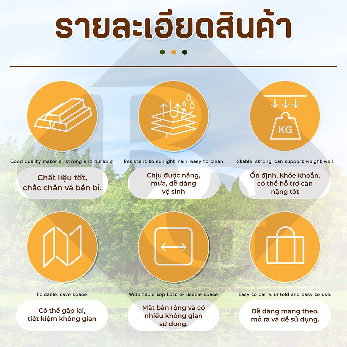 MÔ TẢ SẢN PHẨM - Thương hiệu: NatureHike - Mã sản phầm: NH20JJ020 - Chất liệu: + Mặt bản: Vải Oxford 1680D + Khung bàn: Hợp kim nhôm - Kích thước & Trọng lượng: +