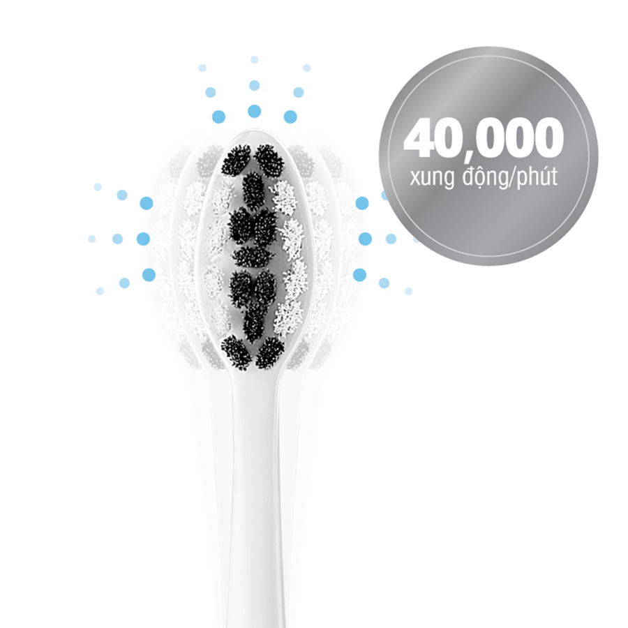 - Công nghệ sóng âm Sonic (Sonicare): Tạo ra tới 62.000 chuyển động bàn chải mỗi phút (31.000 rung động/phút), tạo ra các bong bóng siêu nhỏ chứa kem đánh răng và nước, len lỏi