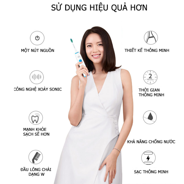 - Sử dụng hiệu quả với những người có vấn đề về xương khớp hoặc vận động, Bàn chải đánh răng điện philips sonicare sẽ giúp bạn làm sạch nhanh một cách hiệu quả