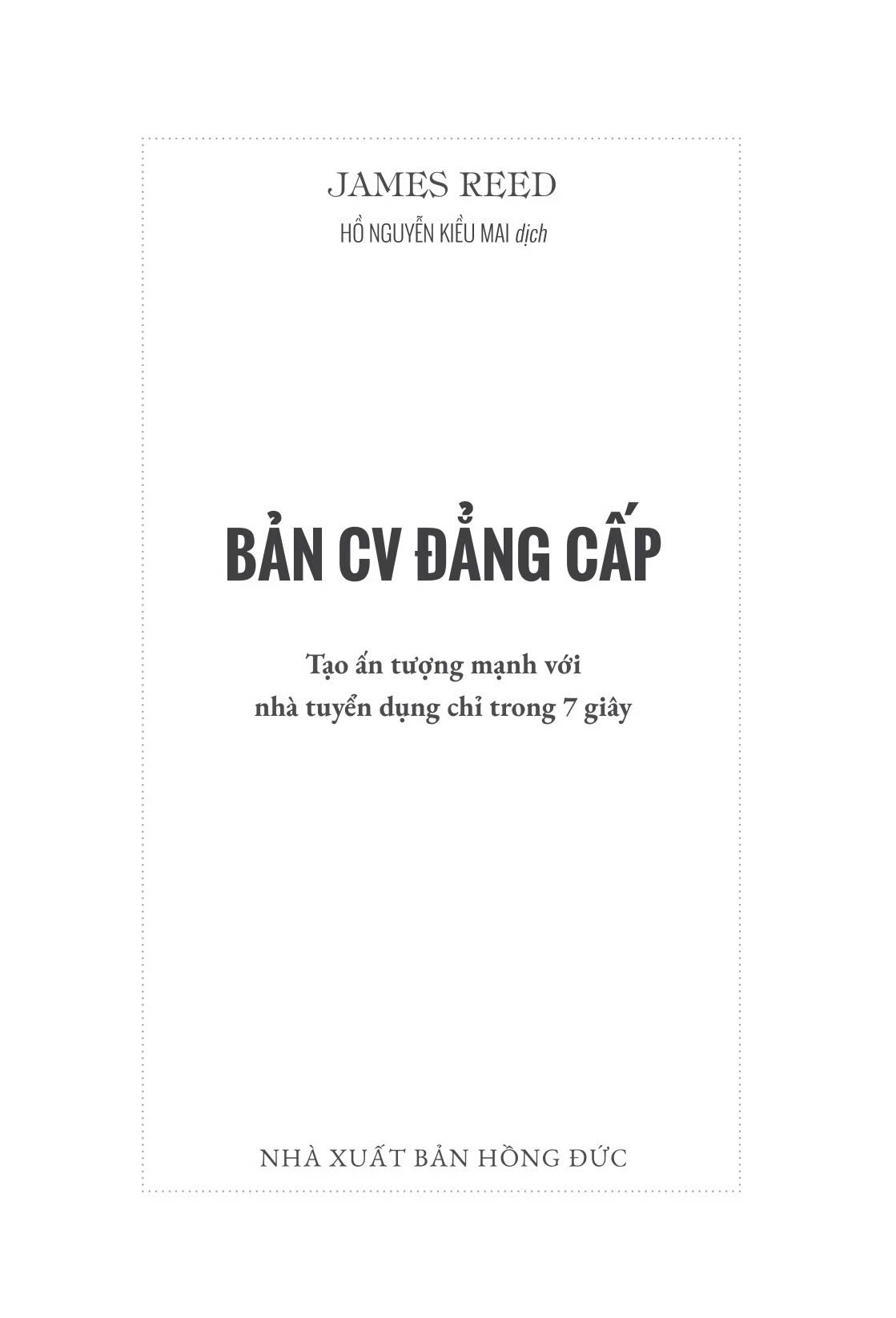 Quy tắc bảy giây có vẻ khá khó nhằn, nhưng bạn không cần chán nản bởi cuốn sách Bản CV Đẳng Cấp sẽ giúp bạn làm tốt việc đó. Qua từng trang sách, bạn sẽ học được nhiều điều quý giá mà các nhà tuyển dụng đã chia sẻ với tác giả dưới dạng những câu trích dẫn. Bên cạnh đó, tác giả James Reed còn cố gắng phân loại các lỗi sai mà người săn việc hay mắc phải bằng cách hỏi những người trong mạng lưới đối tác kinh doanh rộng rãi về kinh nghiệm của họ trong việc đánh giá và sàng lọc CV.