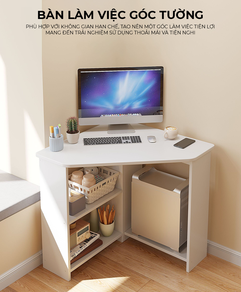 ✨Bàn làm việc góc tường có chỗ để cây máy tính, bàn học sinh, bàn sinh viên, bàn văn phòng tiết kiệm diện tích - GP386