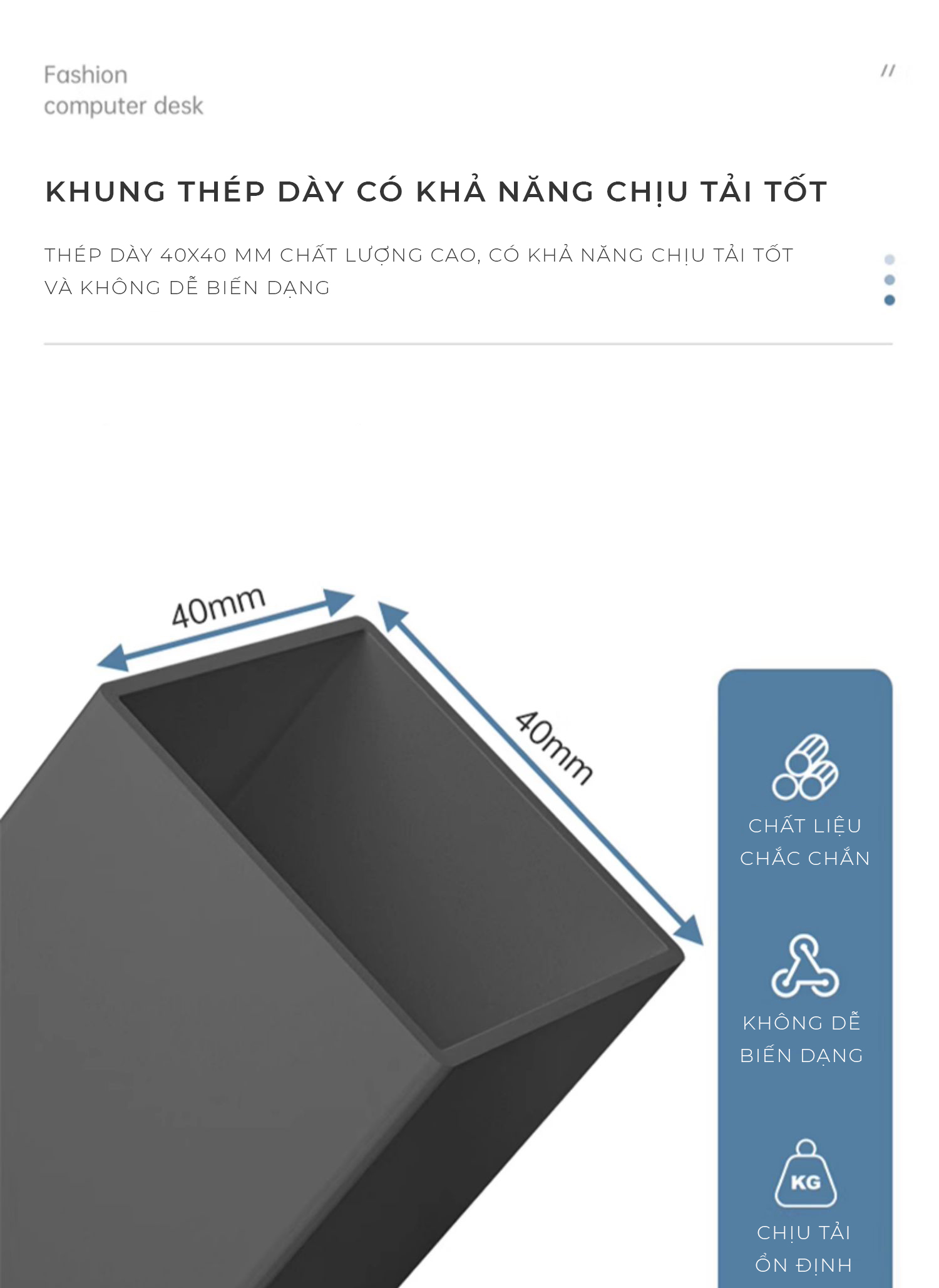 THÔNG TIN SẢN PHẨM - Kích thước: Mặt bàn dài 80cm sâu 40cm cao 75cm - Chất liệu: Gỗ MDF nhập khẩu phủ melamin chống xước chống nước khung thép chống ghỉ sơn tĩnh điện - Màu