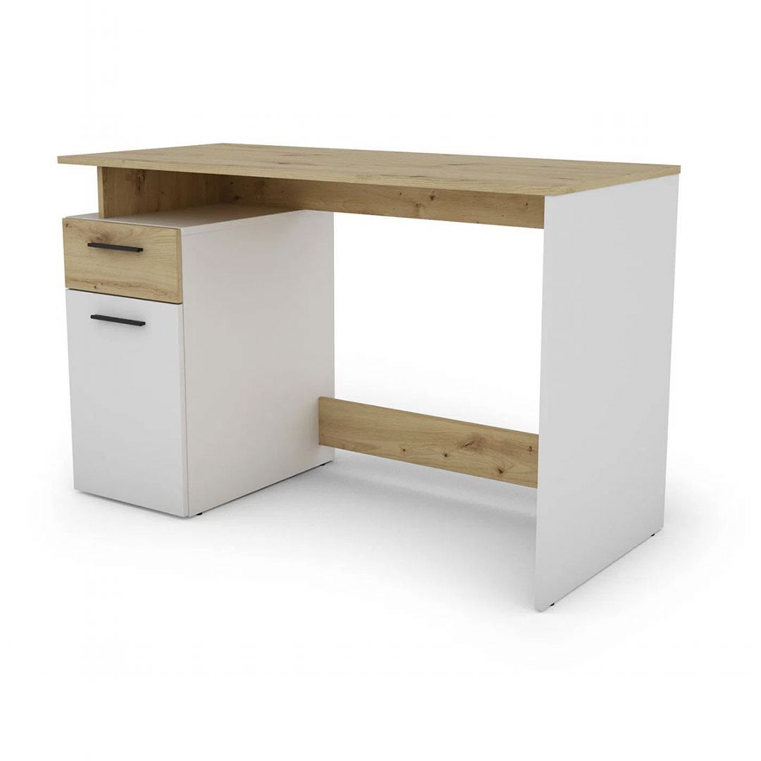 - Tên sản phẩm: Bàn làm việc kèm ngăn kéo và kệ để đồ - Chất liệu: Gỗ MDF phủ melamine cao cấp chống xước - chân bàn gỗ tự nhiên - Màu sắc: Vân gỗ sồi - Kích thước: 80/120 x 55 x 82cm (dài x rộng x cao) - Công năng: Là mẫu bàn làm việc, bàn học giúp tiết kiệm diện tích không gian phòng