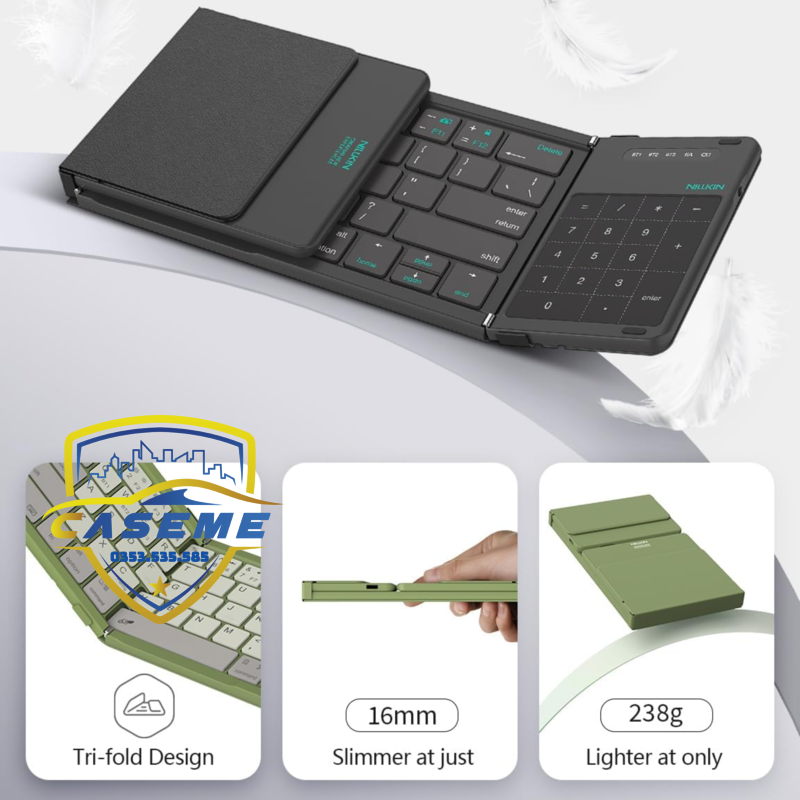 ✨Bàn Phím Bluetooth Gập Gọn Nillkin Cube Chính Hãng – Tích Hợp Touchpad, Bọc Da Cao Cấp, Dùng Cho Smartphone, iPad, Laptop - Hàng Chính Hãng