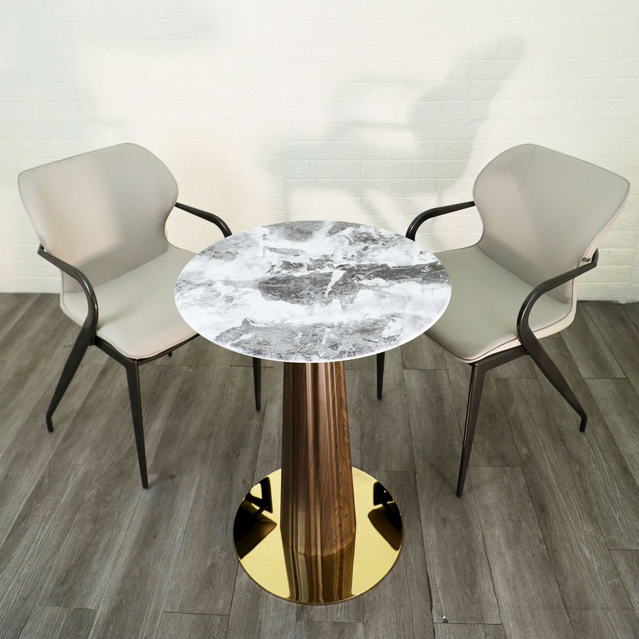 Bàn Ăn Mặt Đá Vân Mây Chân Tròn Inox Sáng Bóng - BA336