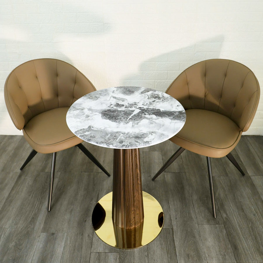 ✨Bàn tiếp khách mặt đá TE1554-06E Nội thất Capta Mặt bàn đá pha lê tròn 60cm chân bàn sắt sơn tĩnh điện vân gỗ đế bàn inox mạ màu vàng sang trọng cao cấp nhập khẩu hcm