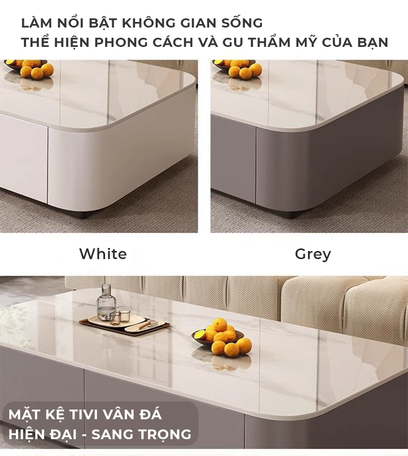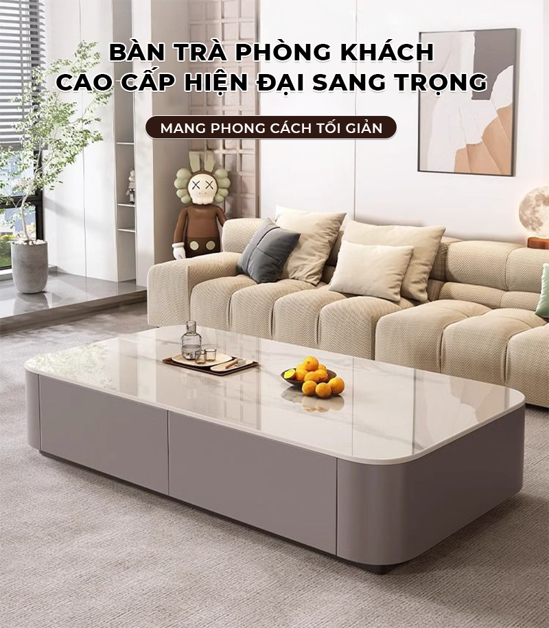 - Công năng: Là mẫu bàn sofa phòng khách sang trọng với thiết kế bọc da quanh viền và mặt bàn màu vân đá hiện đại