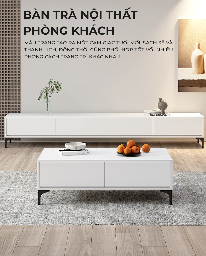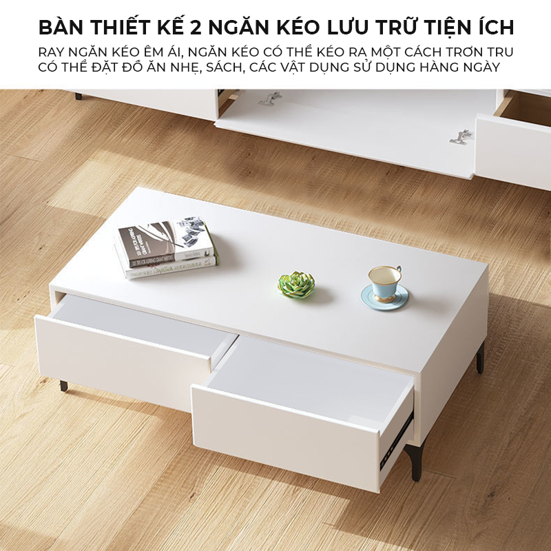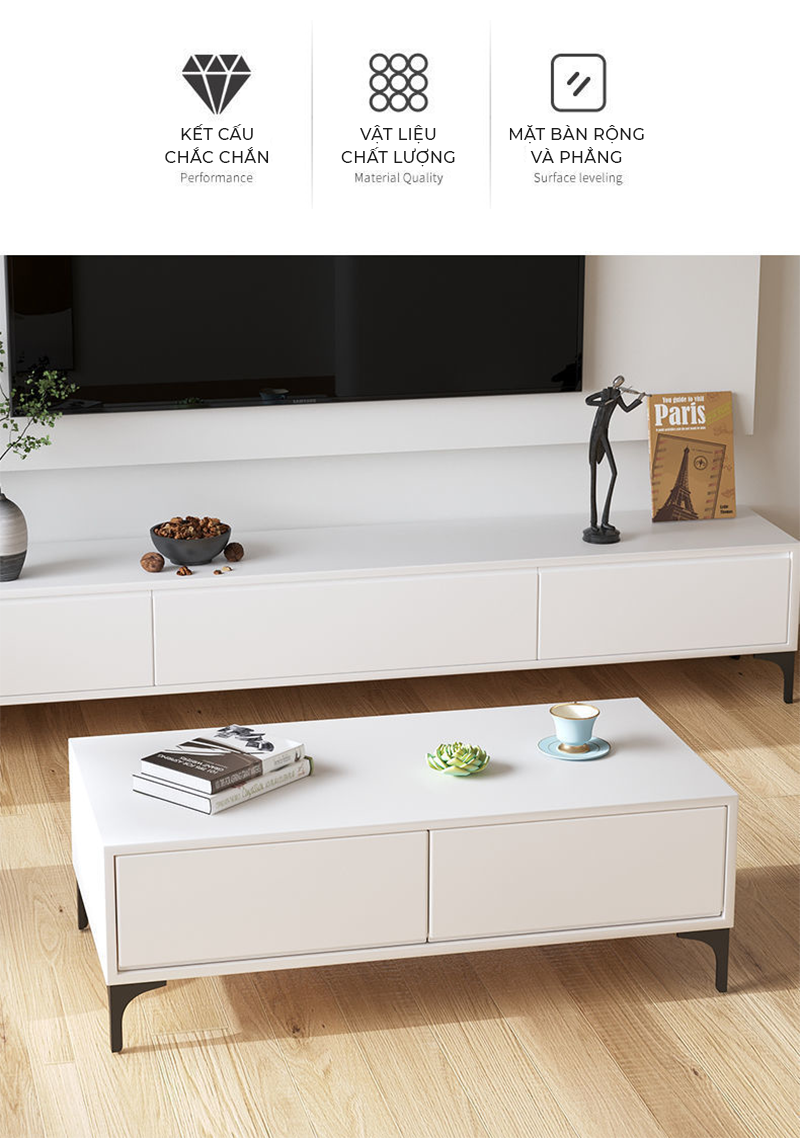 Công năng: Combo kệ tivi và bàn trà có thiết kế hiện đại và thông minh giúp phòng khách đẹp mắt và ấn tượng