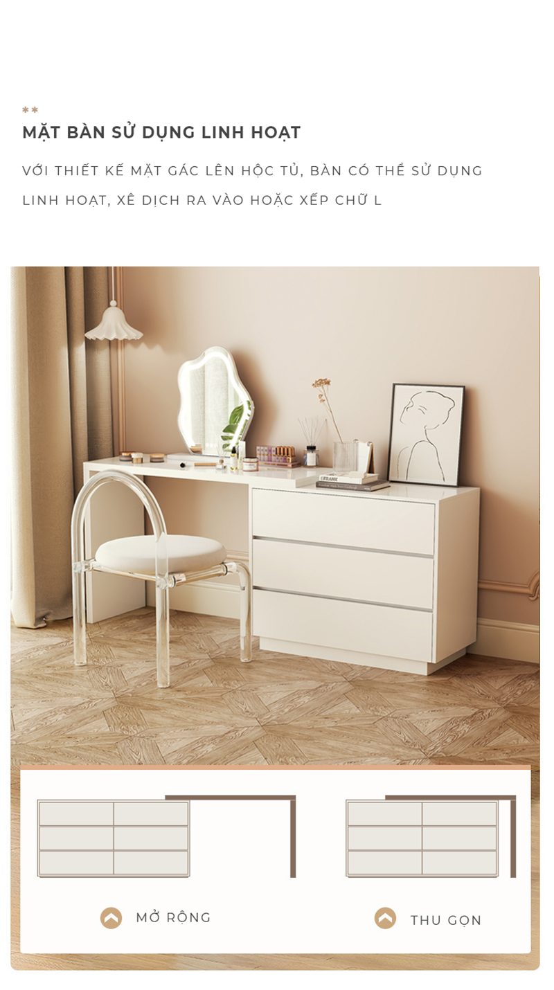 Bàn trang điểm sang trọng hiện đại - Kích thước: Dài 1m x rộng 40cm x cao 75cm - Thanh lịch, thu hút, thời thượng là những tính từ miêu tả chính xác nhất về