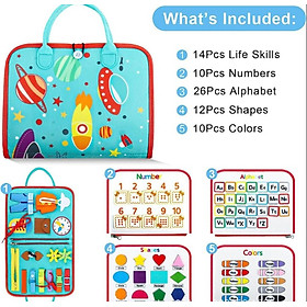 Cặp Busy Broad được thiết kế với 14 chi tiết như dây buộc nhỏ, túi cài, khóa kéo, khóa dán, cúc quần áúp bé tự khám phá những hoạt động cơ bản hằng ngày một cách hào hứng.