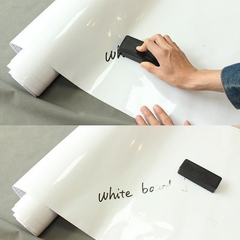 Sản phẩm màu trắng dùng bút dạ để viết. Dễ dàng lắp đặt, chỉ cần bóc lớp phủ keo dính phía sau, dán lên tường hay vị trí phẳng là xong. Đặt biệt sau khi bóc bỏ không bị làm bẩn tường