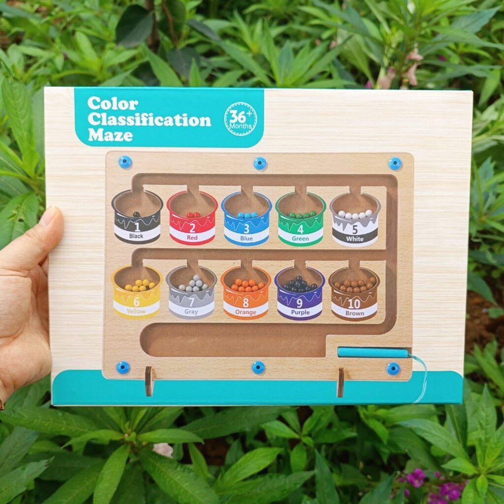 - Bảng được thiết kế đầy màu sắc với hình hũ kẹo, bố mẹ có thể dạy trẻ các màu sắc cơ bản thông qua việc dùng bút từ tính để di chuyển những viên bi nhỏ xinh vào đúng hũ có màu sắc tương ứng.