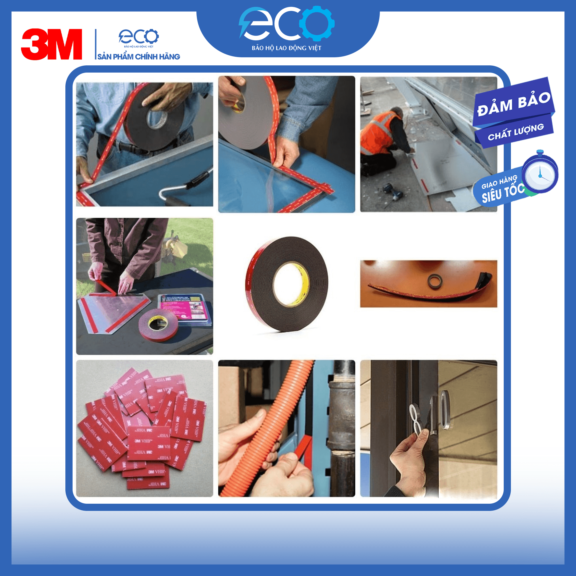 - Kích thước sẵn có: (12mm X 4.5m) Băng keo cường lực 3M VHB 5952 là băng keo 2 mặt được dùng để thay thế các phương pháp ghép nối thông thường như hàn, bắn rivet, ốc vít hay dùng keo … Băng keo có cường lực cao, kháng UV và chịu thời tiết tốt, chịu được ở nhiệt độ âm, thích hợp cho các ứng dụng kết dính cả ngoài trời lẫn trong nhà – Dán tốt với nhiều bề mặt vật liệu: kim loại (nhôm, inox, thép, gang, sắt, bề mặt chống tĩnh điện..) gỗ, nhựa, thủy tinh, kính, mica… – Thay thế hoàn toàn được đinh đóng , ốc vít , tránh làm hỏng bề mặt – Thuờng được sử dụng trong việc :