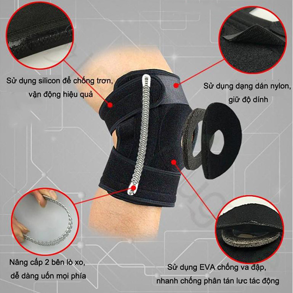 • Thiết kế có 4 lò xo chịu lực, giảm áp lực cho gối khi vận động.