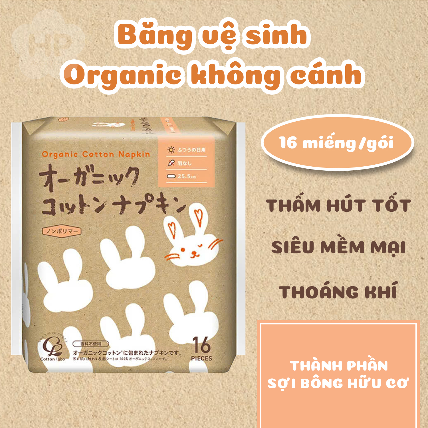Thành Phần Băng Vệ Sinh Organic Không Cánh Cotton Labo Organic Napkin Non-Wings: Lớp bề mặt: 100% cotton hữu cơ