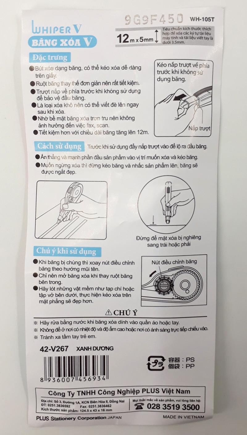 Mua tại TiktokBăng Xóa Plus V-42-V267 (5mm x 12m) - Xanh Dương với thiết kế thông minh với đầu xóa nằm ngang giúp lực kéo êm, nhẹ nhàng, dễ dàng sử dụng.