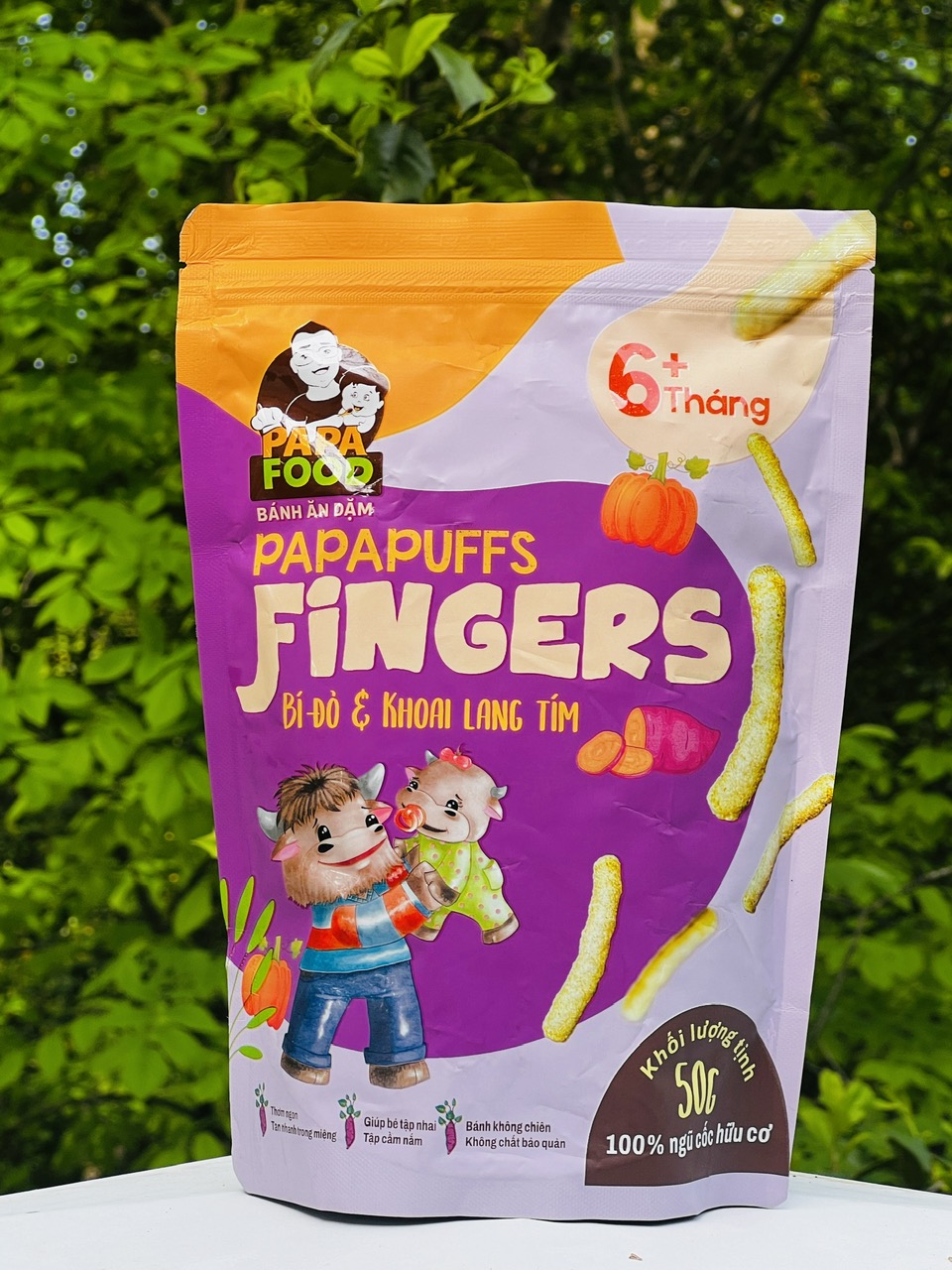 Mua tại Tiktok- Tên sản phẩm: Bánh ăn dặm PAPAPUFFS FINGERS - BÍ ĐỎ VÀ KHOAI LANG TÍM .