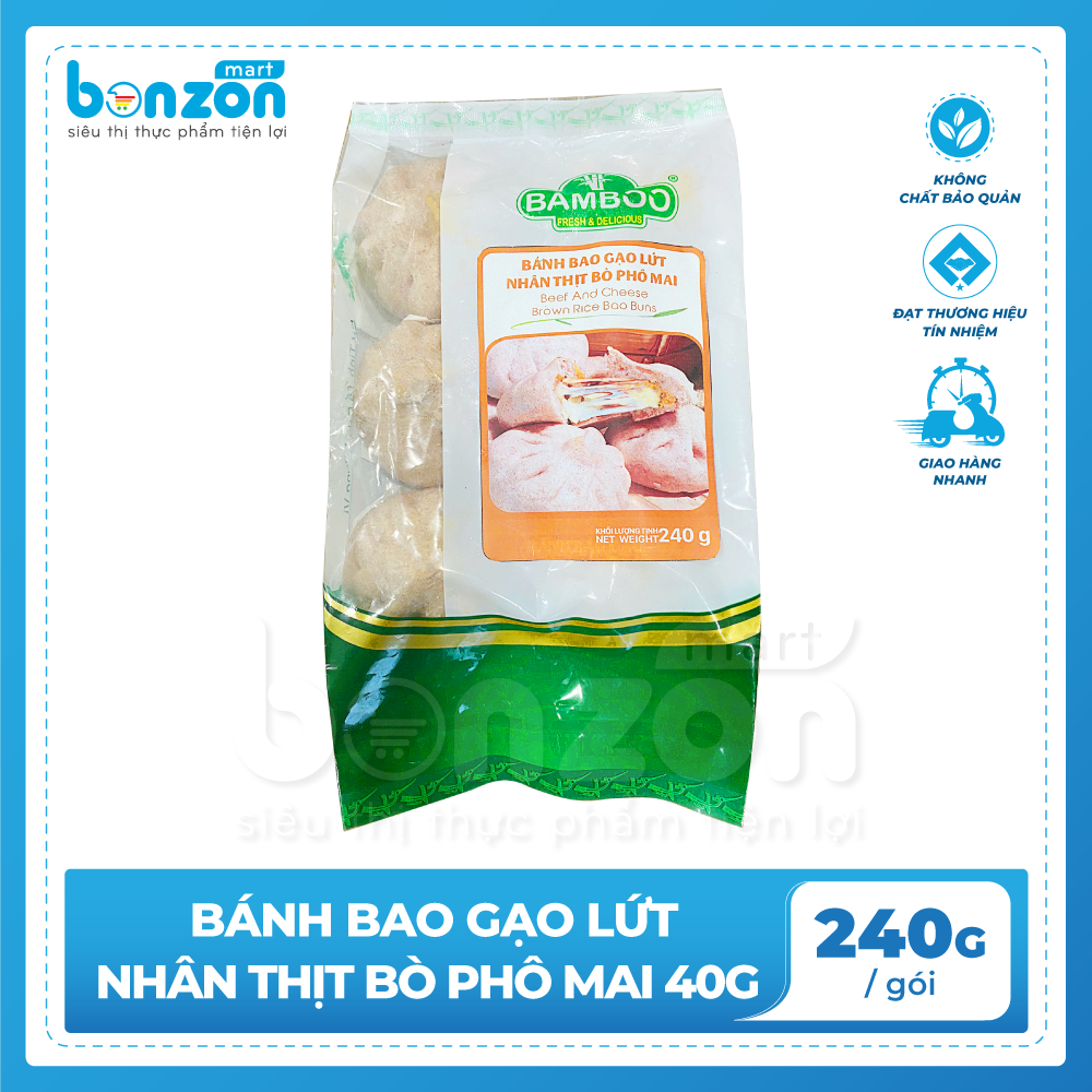 ✨Bánh bao gạo lứt nhân thịt bò phô mai bamboo 40g - Bonzon (240g)