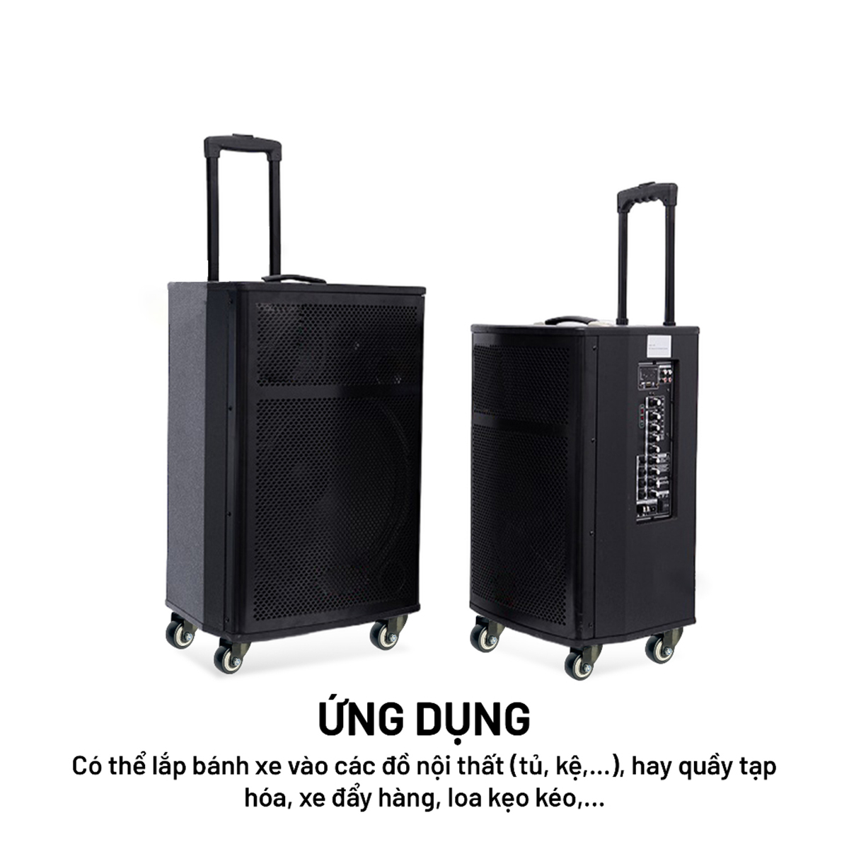 Bánh xe giúp cho bạn dễ dàng lái chuyển hướng linh hoạt có khóa để bạn có thể tạm dừng những nơi có địa hình dốc, không bị trôi xe +Bánh xe được chế tạo