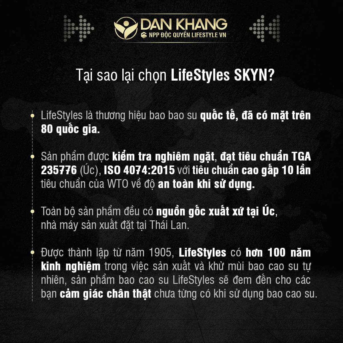 LifeStyles là nhãn hiệu sức khỏe tình dục số một của Úc. Chúng tôi cũng là thương hiệu bao cao su hoạt động lâu nhất thế giới - Tự hào làm bao cao su từ năm 1905.