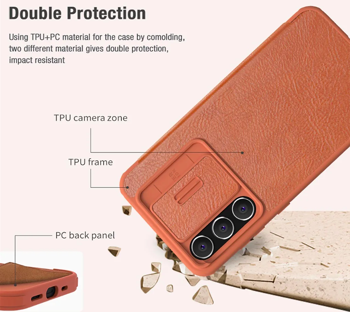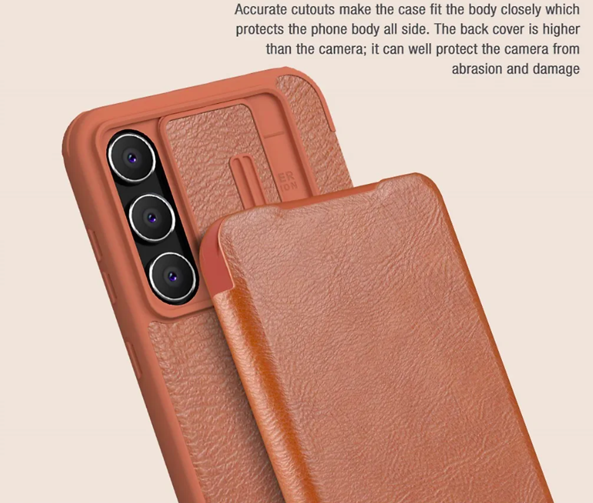 ✨Bao da cho SamSung Galaxy S23 FE chính hãng Nillkin QIN có nắp trượt bảo vệ camera sau - Hàng chính hãng