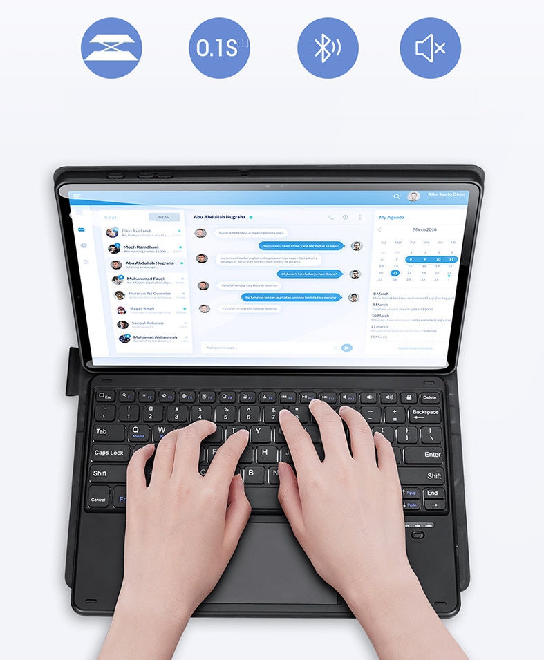 Bao da kèm bàn phím bluetooth có bàn di chuột chính hãng Dux Ducis giúp cho chiếc Galaxy Tab S9 Plus, S9 Fe Plus của các bạn trở thành một chiếc Laptop khá hoàn chỉnh. Kích thước nhỏ gọn mỏng đa năng thích hợp với giới văn phòng hoặc những bạn nào làm việc trên ipad mà phải di chuyển nhiều
