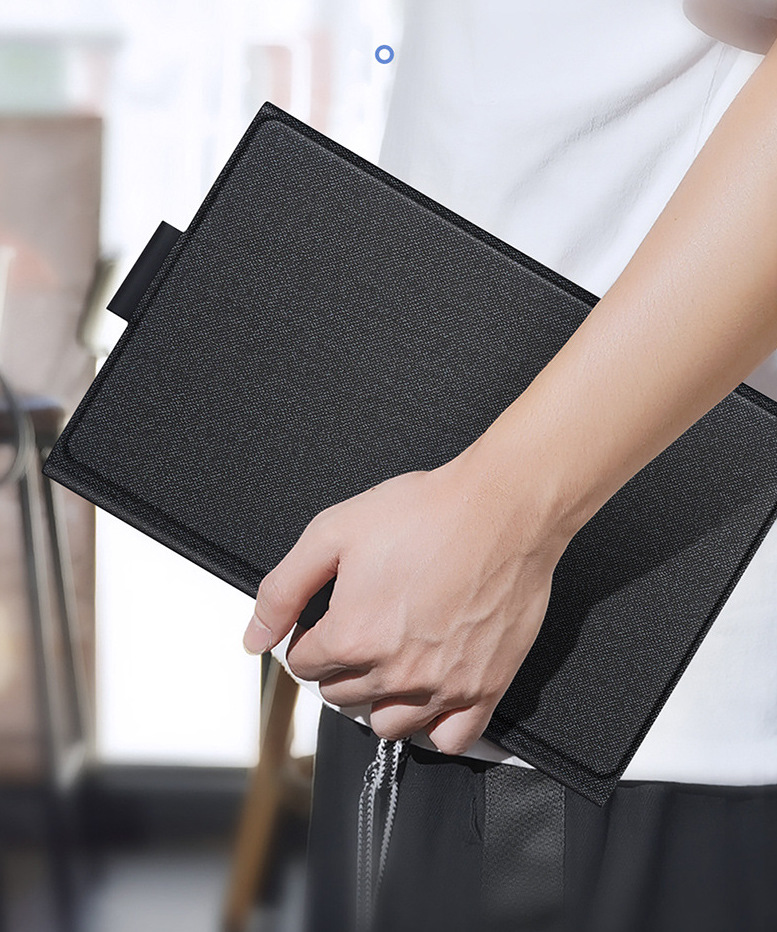 Vỏ bọc ngoài bằng vải dạ dầy phủ kín phần máy và bàn phím , Ốp silicon ôm kín lưng máy bảo vệ tuyệt đối , chân đỡ máy mở ra gập vào gọn gàng lúc làm việc tạo độ nghiêng phu hợp cho người sử dụng thoải mái . Đóng mở thông minh tắt bật màn hình