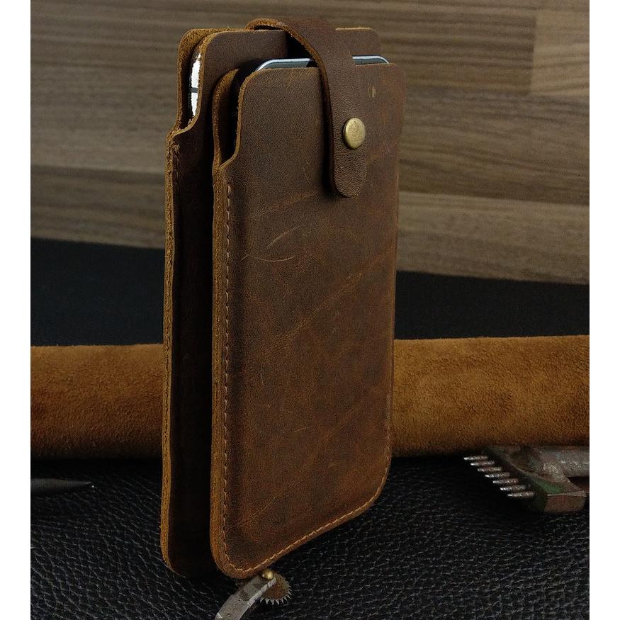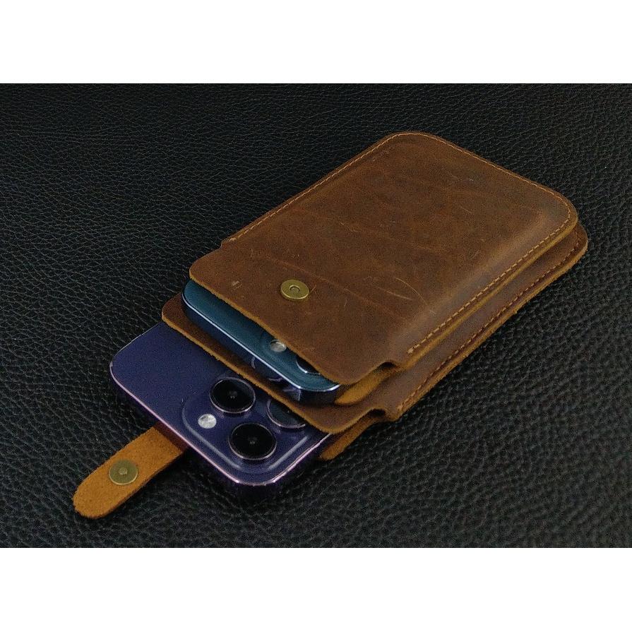 ✨Bao da để 2 điện thoại cho Iphone 12 pro max, 13 pro max, 14 pro max da bò thật