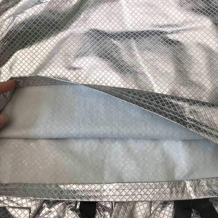 Bạt phủ xe ô tô 7 chỗ 3 lớp tráng nhôm cách nhiệt, chống nóng, chống thấm, chống bụi bẩn - Bạt phủ xe có mặt ngoài là chất liệu vải PEVA tráng nhôm phản