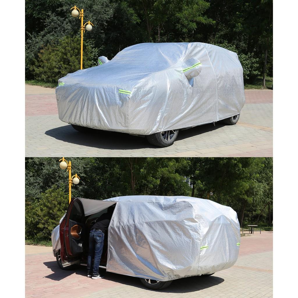 Bạt phủ xe ô tô 7 chỗ 3 lớp tráng nhôm cách nhiệt, chống nóng, chống thấm, chống bụi bẩn - Bạt phủ xe có mặt ngoài là chất liệu vải PEVA tráng nhôm phản