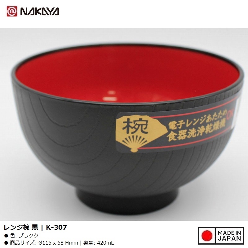 Bát tròn miệng rộng 500ml (Ø14.5×5.5cm) ■ Xuất xứ: Nhật Bản | MADE IN JAPAN ■ Kích thước:Ø145 x 55 Hmm ■ Màu sắc: Đen ~ lòng đỏ ■ Chất liệu:  - Nhựa Polyester (PET) bề mặt phủ
