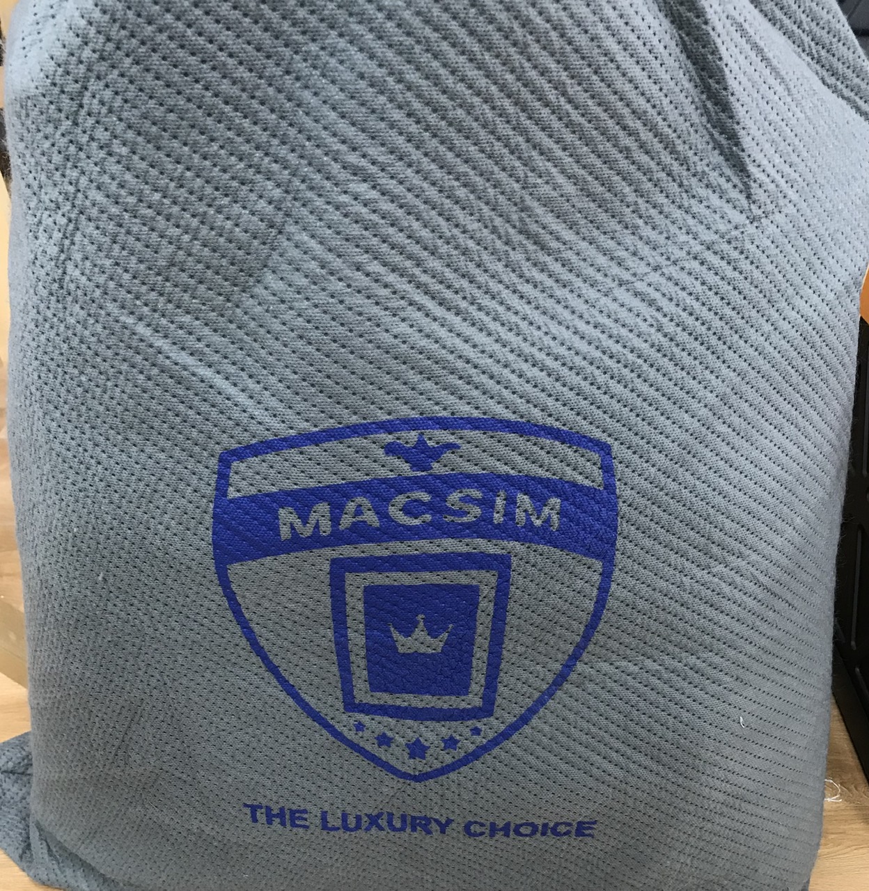 - Chất liệu: Vải không dệt (non- woven fabric) là thuật ngữ được sử dụng trong ngành sản xuất dệt may để biểu thị các loại vải được tạo ra không phải bằng phương pháp dệt thoi hay dệt kim. Vải không dệt là loại vải được cấu tạo bởi các hạt nhựa tổng hợp và một số thành phần khác bổ sung. Nó được liên kết với nhau bằng chất kết dính, hoặc nhiệt cơ khí từ máy móc hiện đại sau đó trải qua một quy trình kéo thành sợi và kết hợp với nhau thành những tấm vải mỏng nhẹ, xốp và có độ bền rất cao. Toàn bộ quy trình để tạo thành tấm vải hoàn toàn không sử dụng phương pháp dệt vải như các loại vải thông thường khác, nên được gọi là vải không dệt. Vải không dệt rất nhẹ, chịu được nhiệt độ cao, cách âm, chống mài mòn, thân thiện với môi trường, không ảnh hưởng đến sức khỏe người sử dụng. Vải không dệt ứng dụng rộng rãi trong các ngành công nghiệp dệt may của Mỹ và các nước châu Âu. Nhận thấy những ưu điểm vượt trội của vật liệu không dệt thương hiệu Macsim hợp tác với nhà máy sản xuất bạt phủ hàng đầu, nghiên cứu và sản xuất ra loại bạt phủ không dệt được kết hợp với các chất liệu khác giúp tối ưu công năng sử dụng của bạt, chịu được thời thời tiết khắc nghiệt: Mưa, nắng, gió tốt hơn so với những loại bạt thông thường . Đây là loại bạt phủ lần đầu tiên xuất hiện tại thị trường Việt Nam.