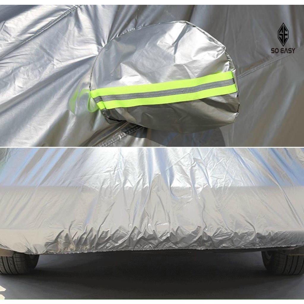 Bạt phủ xe ô tô 7 chỗ 3 lớp tráng nhôm cách nhiệt, chống nóng, chống thấm, chống bụi bẩn - Bạt phủ xe có mặt ngoài là chất liệu vải PEVA tráng nhôm phản