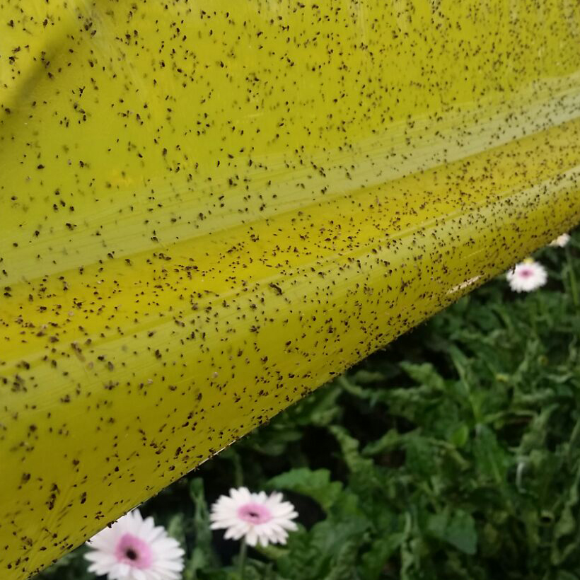 BẪY CÔN TRÙNG ISRAEL TRONG HOA CÚC TRANG TRẠI NÔNG NGHIỆP + Bẫy côn trùng ISRAEL (Sticky Yellow Roll) là dạng bẫy dính hấp thụ côn trùng bằng màu sắc với một lớp keo mỏng