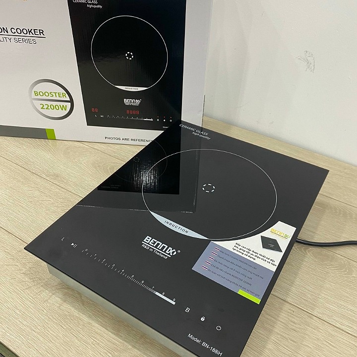 Bennix là mẫu bếp từ đơn rất được ưa chuộng, đến từ thương hiệu của Thái Lan, áp dụng dây chuyền sản xuất hiện đại của Đức đảm bảo độ bền. Bếp từ sở hữu màu đen tuyền sạch sẽ, bề mặt bếp bằng kính ceramic có khả năng chịu nhiệt độ cao, chịu lực tốt, dễ lau chùi vệ sinh bằng khăn ẩm.
