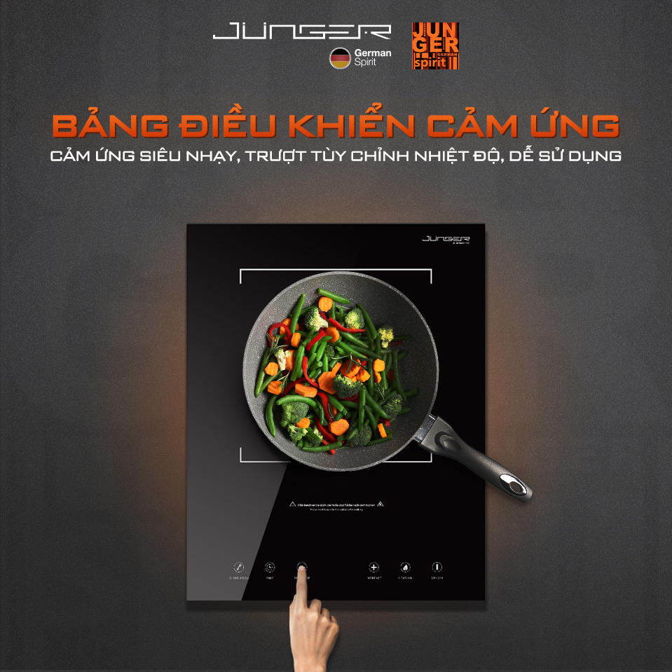 Mô Tả Sản Phẩm CÔNG SUẤT CỰC MẠNH 2200W, ĐIỀU CHỈNH NHIỆT ĐỘ BẰNG CẢM ỨNG VÀ NÚM XOAY, KHÔNG KÉN NỒI,DÙNG CHO MỌI LOẠI NỒI,CÓ THỂ NƯỚNG TRỰC TIẾP LÊN BẾP MẶT KÍNH GERMANY