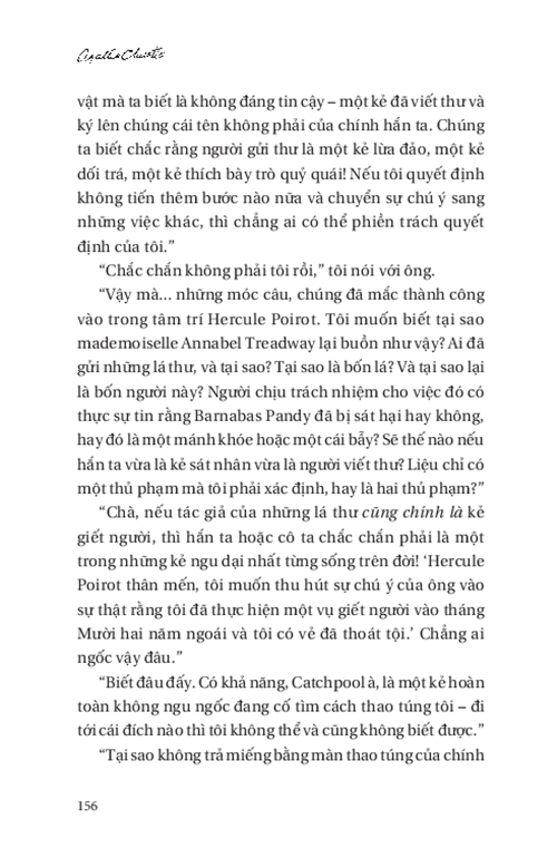 Với sự giúp đỡ của thanh tra Edward Catchpool, Poirot phải tìm ra sự thật giữa một mạng lưới nhằng nhịt các mối quan hệ, những bí mật động trời, những mạng sống bị đe dọa, nhiều lầm lỗi và sự tha thứ. Lắt léo, hấp dẫn, và thông tuệ, một lần nữa Sophie Hannah đã làm sống lại vị thám tử được yêu thích nhất mọi thời đại.
