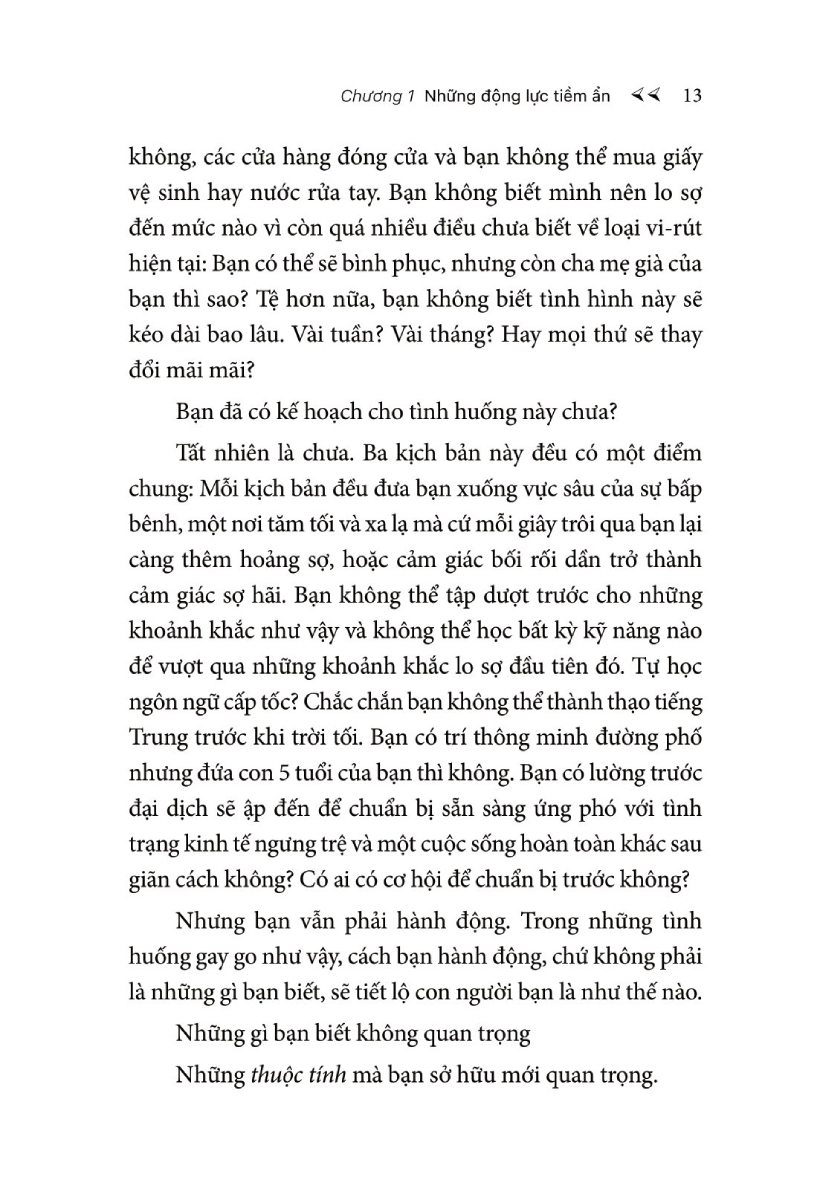 Bí Mật Đằng Sau Những Cá Nhân Xuất Sắc Điều gì sẽ giúp bạn đưa ra quyết định đúng đắn khi rơi nghịch cảnh? Theo tác giả Rich Diviney viết trong quyển sách “Bí Mật Đằng Sau Những Cá Nhân Xuất Sắc”, các “thuộc tính” ẩn bên trong, luôn chạy ở chế độ ngầm và quyết định cách chúng ta cư xử, phản ứng, đưa ra quyết định hay hành động. Tác giả Rich Diviney là Trung tá của Hải quân SEAL - lực lượng được mệnh danh là tinh nhuệ nhất quân đội Mỹ, chính là lực lượng đã tiêu diệt trùm khủng bố Bin Laden. Diviney là một trong những người chịu trách nhiệm đào tạo, tuyển chọn lính SEAL cho một đội đặc nhiệm thuộc Hải quân SEAL. Điều mà Diviney và các đồng đội của ông tìm kiếm không phải là kỹ năng, mà chính là các “thuộc tính”. Thuộc tính chỉ bộc lộ khi bạn gặp những tình huống có tính thử thách cao, đặc biệt là ở những hoàn cảnh bất định buộc bạn phải hành động theo bản năng. Các thuộc tính cũng ảnh hưởng đến cách mọi người, bao gồm đội nhóm, cấp trên cấp dưới, vợ chồng, con cái và bạn bè tương tác với nhau. Một nhóm đồng nghiệp có năng lực, có kỹ năng nhưng khi làm việc cùng nhau có thể là một thảm họa, trong khi một tập hợp những cá nhân dường như chỉ ở mức trung bình lại là một tập thể xuất sắc. Các thuộc tính có thể gợi ý ai là người lãnh đạo hiệu quả và ai là cấp dưới trung thành. Không nên nhầm lẫn thuộc tính với các đặc điểm tính cách. Tính cách được xây dựng từ các khuôn mẫu hành vi tồn tại trong một khoảng thời gian dài. Đó là biểu hiện bên ngoài của tất cả những điều tạo nên con người bạn: kỹ năng, thói quen, cảm xúc, quan điểm và thuộc tính của bạn, tất cả điều này kết hợp với nhau. Có vô số yếu tố ảnh hưởng đến tính cách của bạn, từ di truyền, cách nuôi dạy đến môi trường sống. Thuộc tính chỉ là một trong những yếu tố cơ bản đó. Bí Mật Đằng Sau Những Cá Nhân Xuất Sắc định nghĩa “THUỘC TÍNH” là những gì? Theo định nghĩa của Rich Diviney, thuộc tính là: